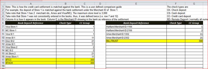 Yes, we can assign the key terms BTCC and BTACH as group 300 ( sample number) while in the bank, the Billtrust deposit will be assigned to group 300. Thus, by doing this, group 300 is comparable to group 300 in the bank.